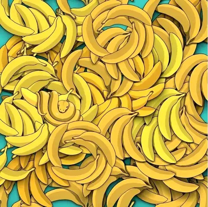 یک مار خیلی زیرکانه بین موزها پنهان شده است. اگر آن را دیدید، خودتان را یک مغز متفکر توهم بصری بدانید. این توهم نوری یک تست هوش کوچک در لباس مبدل است.