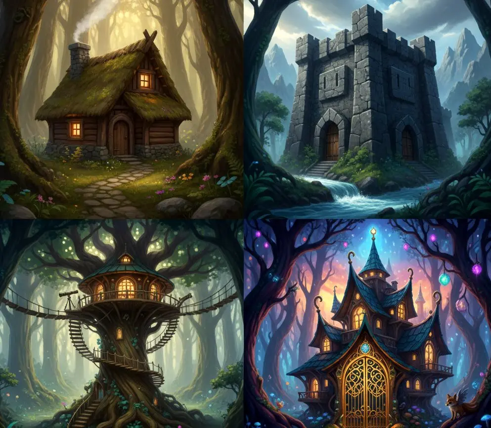 فرض کن در یک جنگل زیبا و مرموز گم شده‌ ای. در دل این جنگل، چهار خانه متفاوت منتظر توست.
